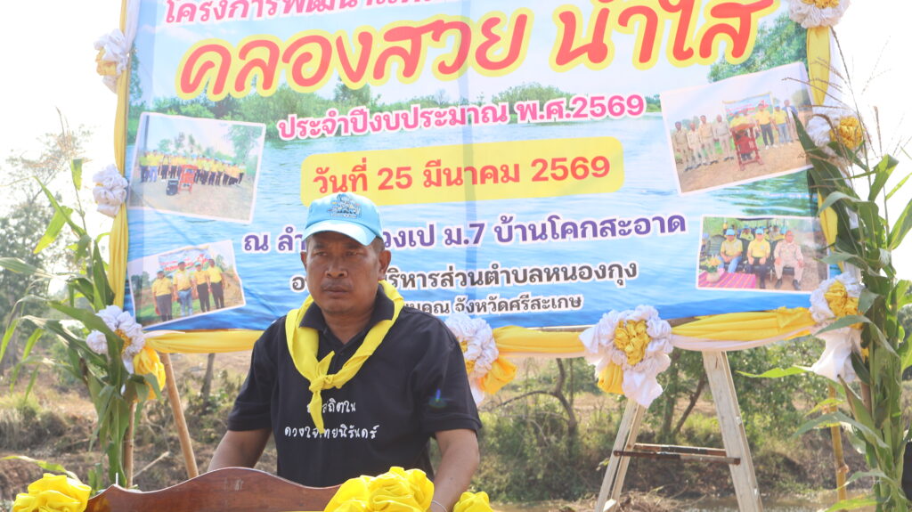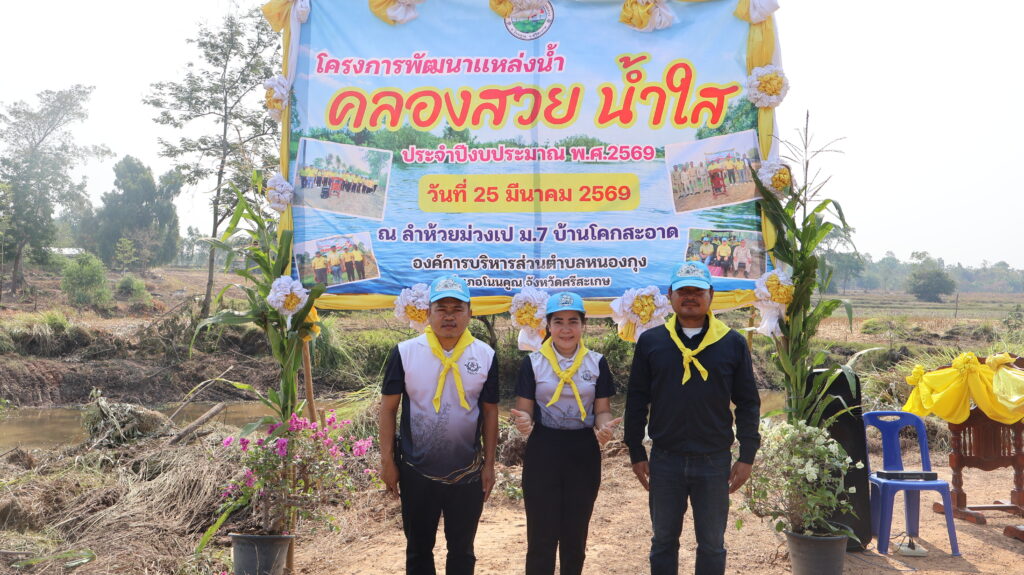 วันที่ 25 มีนาคม 2569 เวลา 09:00น. นายไพฑูรย์ อักโข นายกองค์การบริหารส่วนตำบลหนองกุงพร้อมคณะบริหาร นายเสาร์ แพงคำ ประธานสภา พร้อมด้วย สมาชิกสภาตำบลหนองกุง นางสาวสุดาวรรณ หอมเงิน ปลัดองค์การบริหารส่วนตำบลหนองกุงพร้อมพนักงานส่วนตำบลและพนักงานจ้าง ร่วมโครงการพัฒนาแหล่งน้ำ คลองสวย น้ำใส ณ ลำห้วยม่วงเป หมู่ที่ 7 บ้านโคกสะอาด ตำบลหนองกุง อำเภอโนนคูณ จังหวัดศรีสะเกษ โดยมีนายชัยวัฒน์ ธรรมวัตร นายอำเภอโนนคูณ เป็นผู้กล่าวเปิดโครงการ